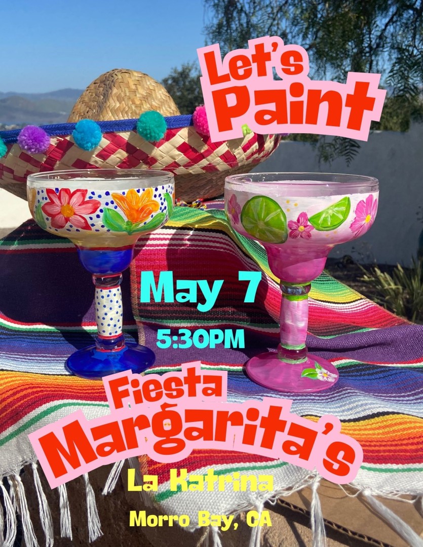A night of creativity awaits you at La Katrina's in Morro Bay, CA! Join the FUN as we paint and customize margarita glasses (2) for you to take home and enjoy! Your host from The Canvas Club, will take you and your guests step-by-step as you create your personalized margarita glasses. A great night out and FUN experience to share in. Also enjoy the wonderful flavors of Mexico with La Katrina's delicious food and drink specials. It’s a wonderful and rewarding way to spend the evening. Great for Date night, Girls night, a get together with friends or even solo! We'll supply everything you need to create your fabulous glassware. Always a great group of participants! PAINT, SIP, RELAX and enjoy the company of fellow art enthusiasts! Take home your fancy margarita glasses and enjoy!